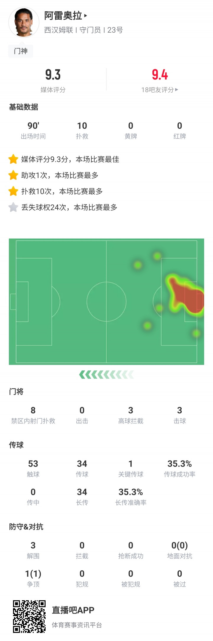 Thật là cường điệu! Thủ môn Areola của West Ham đã thực hiện 10 pha cứu thua và 1 pha kiến tạo trong một trận đấu, hầu hết đều là những pha cứu thua xuất sắc.