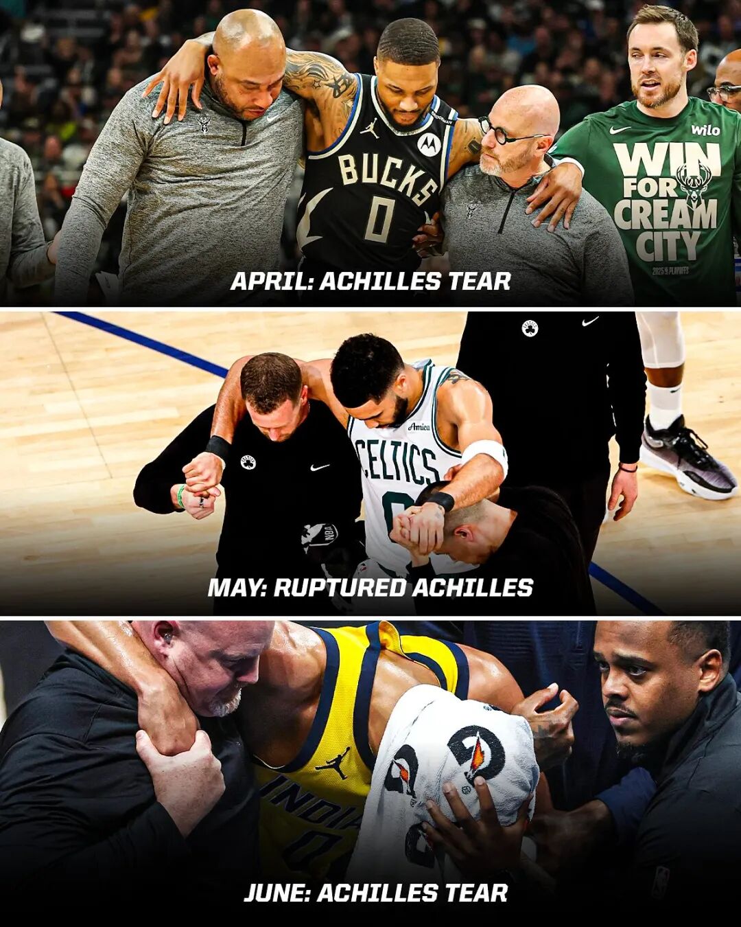 Ví dụ: trước và sau khi Tatum bị thương, Lillard (bị thương sớm hơn nhưng lớn tuổi hơn) và Haliburton (bị thương muộn hơn nhưng trẻ hơn) cũng bị chấn thương gân Achilles. Cả hai gần như chắc chắn sẽ vắng mặt tất cả các trận đấu ở mùa giải mới.