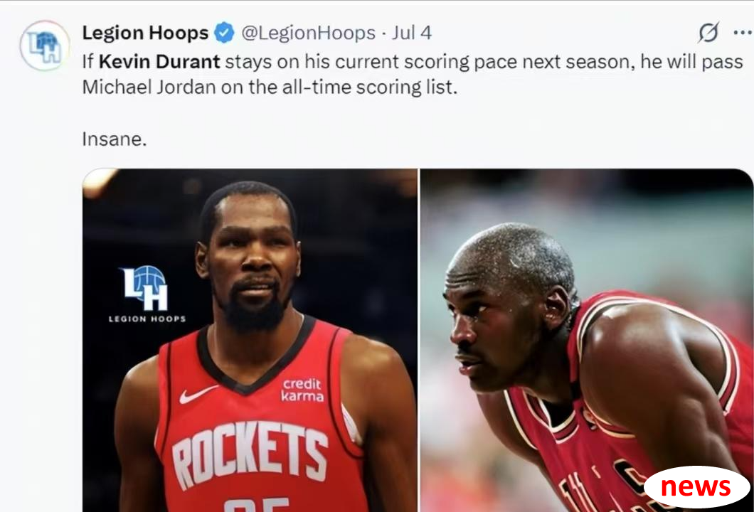 Có phải Durant dự kiến sẽ vượt qua Jordan trong tổng số điểm trong mùa giải tới?