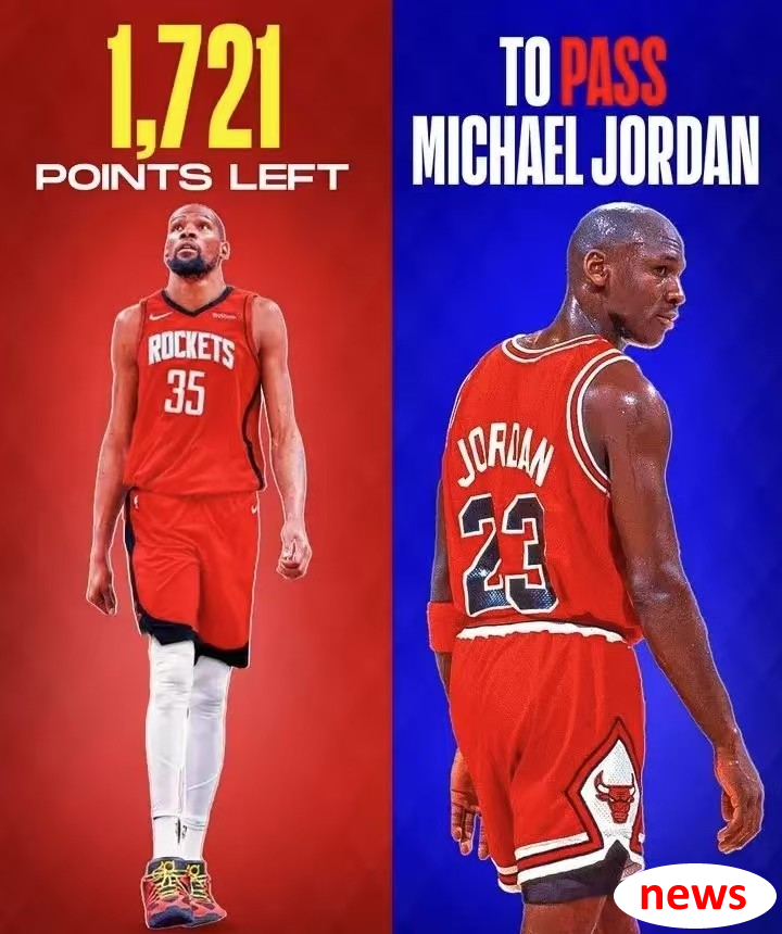 Bây giờ, Durant ghi được 30.571 điểm trong mùa giải thông thường, Jordan ghi được 32.292 điểm và hai điểm vẫn có 1.721 điểm, gần như gần.