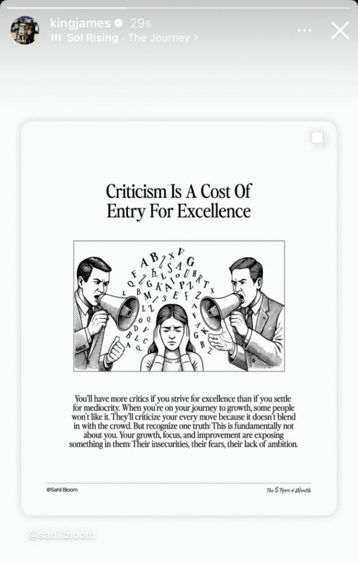 Sau đó, James chuyển tiếp một bài đăng về triết lý sống. Nội dung như sau: