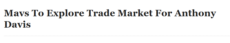 Vào ngày 19 tháng 11, theo phóng viên McMahon của ESPN, nhiều nguồn tin tiết lộ rằng Mavericks sẽ khám phá thị trường giao dịch cho cầu thủ nội bộ Anthony Davis trước thời hạn giao dịch trong mùa giải này.